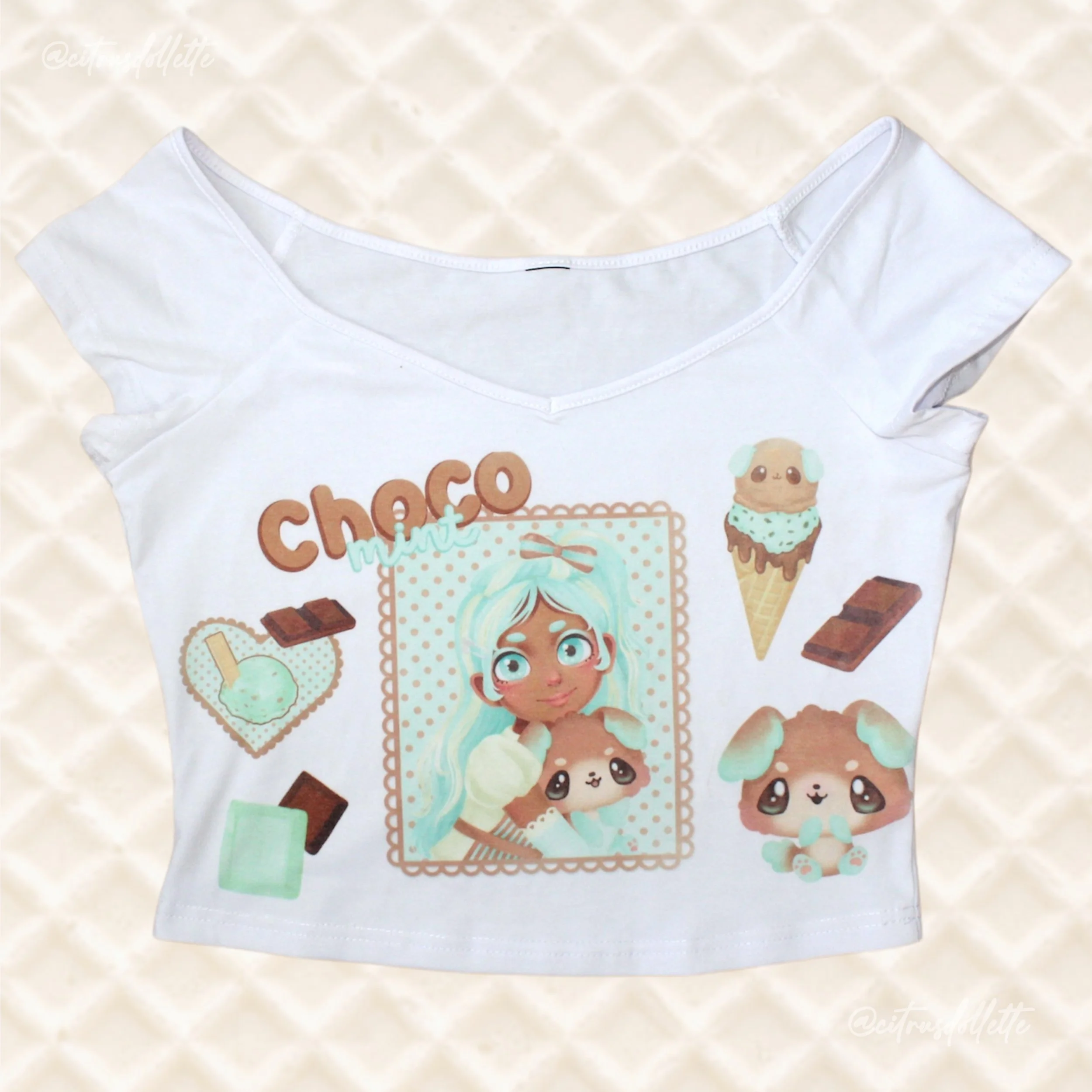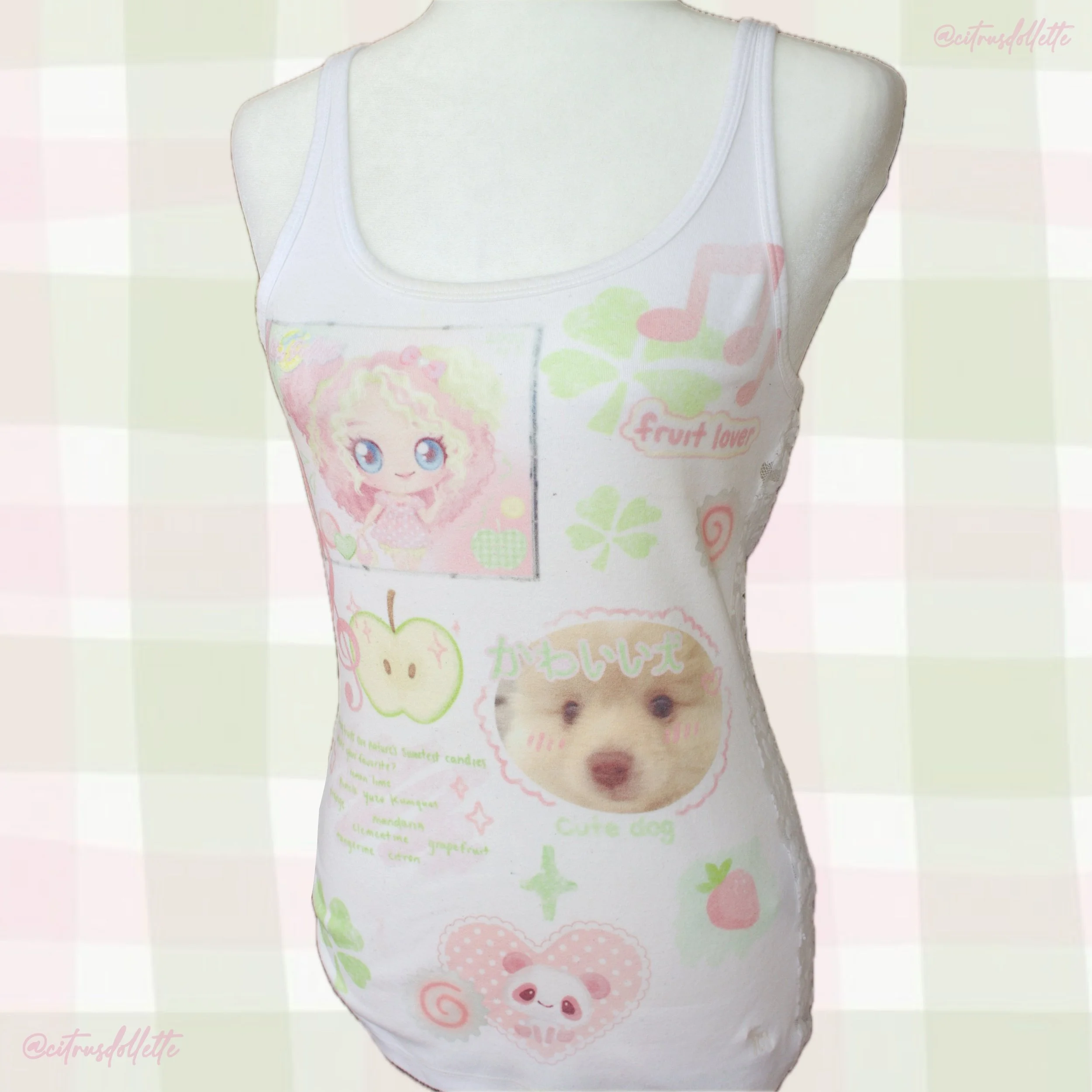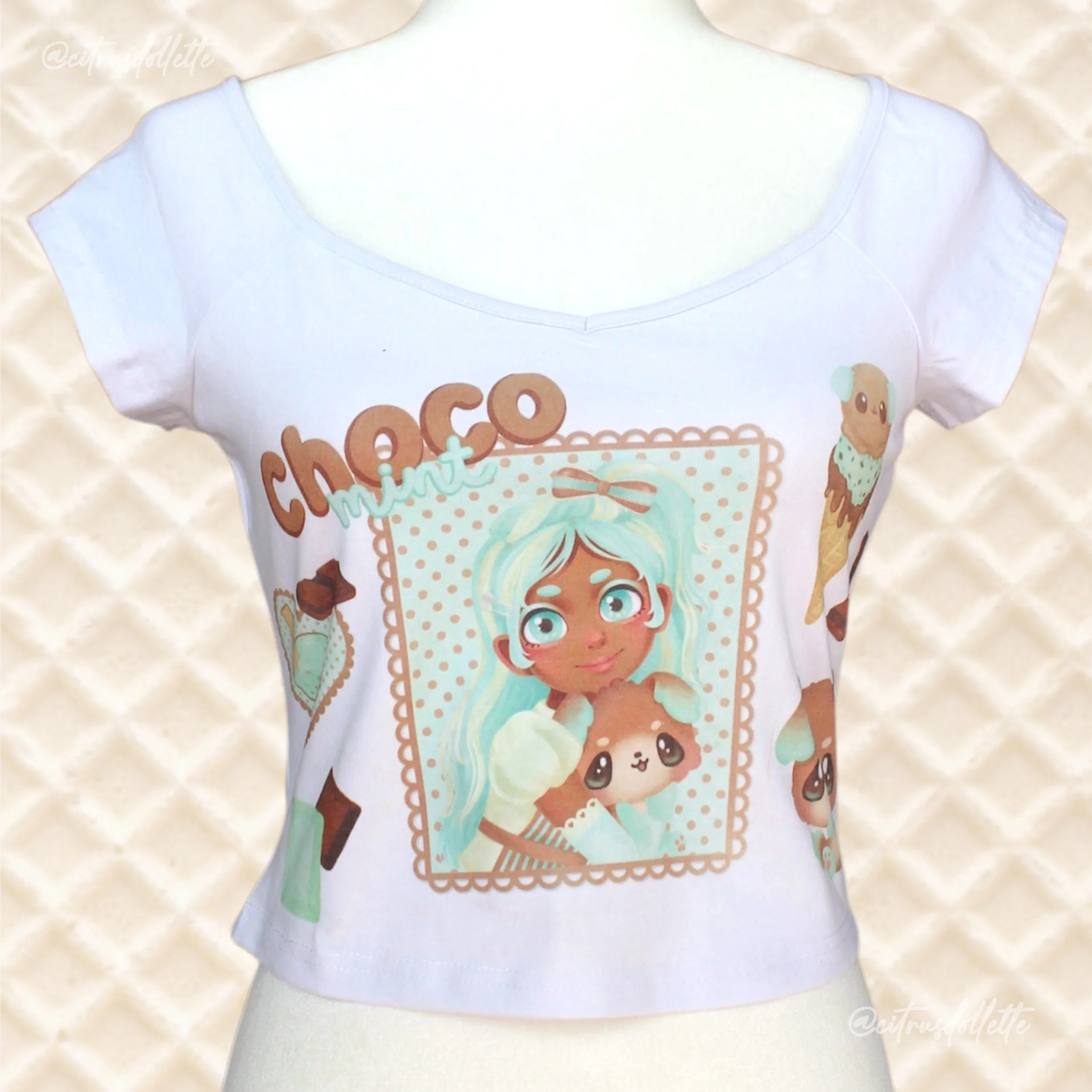 B-grade slightly sheer, 80D white tights printed with neapolitan inspired elements.